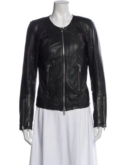 Pre-owned Leather Biker Jacket In Gray