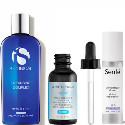 This post-procedure bundle is designed to support and enhance skin recovery following neurotoxin treatments. It includes the iS Clinical Cleansing Complex to gently purify the skin, SkinCeuticals P-TIOX Anti-Wrinkle Peptide Serum to help smooth fine lines and support a youthful appearance, and SENTÉ Dermal Repair Cream to deeply hydrate and strengthen the skin barrier. Together, these products work synergistically to calm, restore, and optimize post-treatment results.