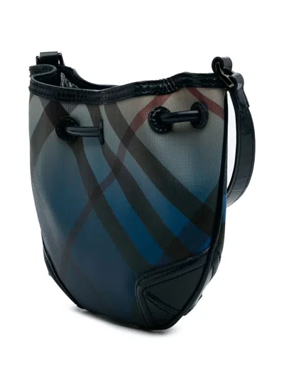 Pre-owned 2000-2017 Supernova Check Coated Canvas Gradient Drawstring Crossbody Bag In Blue