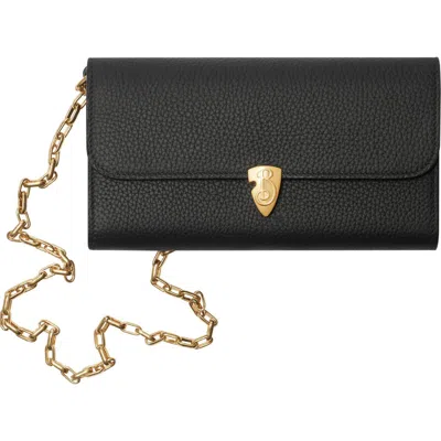 A wallet made in Italy from grainy calf leather and lined in smooth leather. The B shield motif at the closure is inspired by our Equestrian Knight Design. Use the detachable chain strap to wear as a clutch or a mini bag.||Detachable chain strap|Foldover flap with B shield closure|12 card slots|Two interior compartments|Exterior slip pocket, two interior slip pockets, interior zip pocket|Hand-painted edges|Brushed metal hardware|Embossed Burberry lettering at inner|Comes with a dust bag 21 x 4.5 x 11cm/8.3 x 1.8 x 4.3in Shoulder strap drop: 50cm/19.7in Outer: 100% calf leather Linings: 100% lambskin; 53% cotton, 47% polyurethane Made in Italy