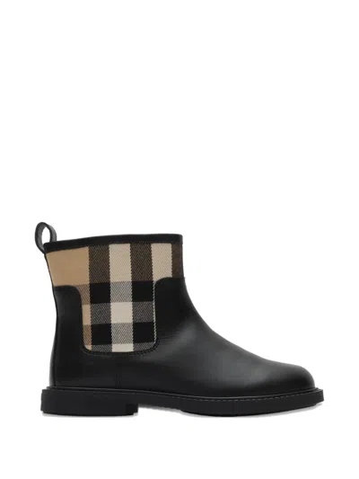BURBERRY Kids' Check-panel Leather Boots In Black
