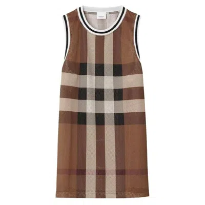 BURBERRY Check Pattern Mesh Vest In Brown
