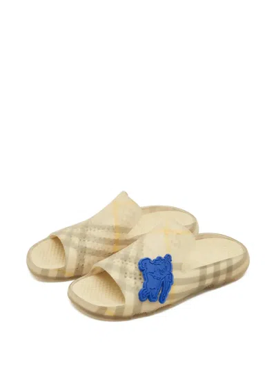 Pre-owned Check-pattern Open-toe Slides In Neutral