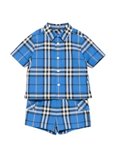 BURBERRY Babies' Check-pattern Shorts Set In Blue