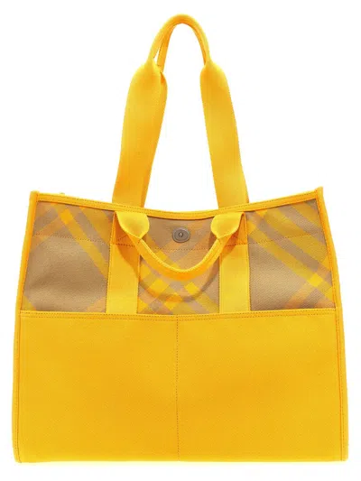 Looking for a bag that's both stylish and practical? This tote combines classic design with modern functionality, making it perfect for your daily adventures. And hey, it's made in Italy, so you know it's crafted with love. Vibrant yellow check cotton twill Convenient open top with snap closure Durable canvas handles in two lengths Hand-painted edges for a unique touch Ample storage with two inside pockets and two outside open pockets | Burberry Women's Shopper Xl Model Bag in B7311 Jaune | 8075135 Color B7311