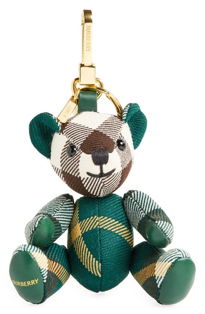Burberry's signature teddy bear, Thomas, is all decked out in house check on a little charm made for clipping to your favorite bag or securing your keys.