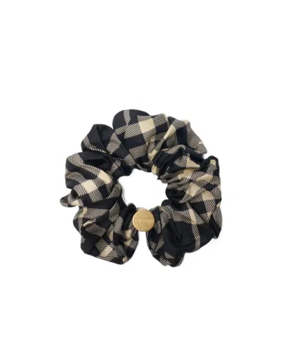 BURBERRY Silk Scrunchie With Check In Black