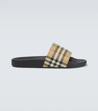 Since arriving at Burberry, Riccardo Tisci has completely revamped its collections and drenched the label's fresh new designs with a sprinkling of his streetwear credentials. But Burberry is still Burberry, which means CHECKS. The Furley sliders are basically exactly the pair of pool sliders you would expect from the great British brand. Pairs well, of course, with checked shorts.Burberry rubber slidersDetails:Slip onCheck printMoulded footbedFabric:Upper: 100% rubberSole: 100% rubber