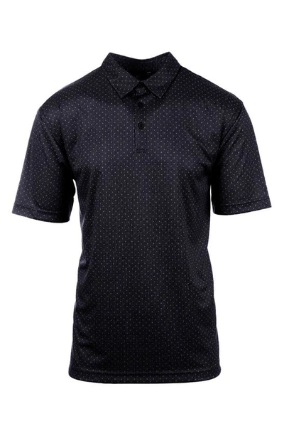 An eye-catching pattern decorates this modern polo, built with plenty of stretch for casual comfort. Spread collar Short sleeves 100% polyester Machine wash, tumble dry Imported Model stats: 6'1" height, 32" waist. Model is wearing size Medium.