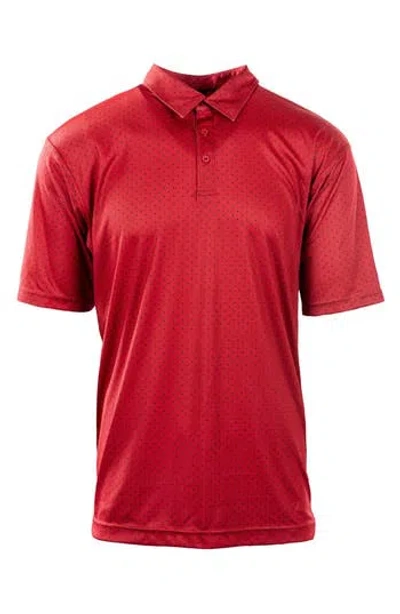 An eye-catching pattern decorates this modern polo, built with plenty of stretch for casual comfort. Spread collar Short sleeves 100% polyester Machine wash, tumble dry Imported Model stats: 6'1" height, 32" waist. Model is wearing size Medium.