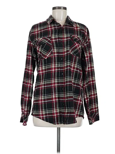 Burnside Long Sleeve Button Down Shirt, Size: Medium. Item Details: Black, Plaid Pattern, Collared Neckline, Flannel, Women's Tops