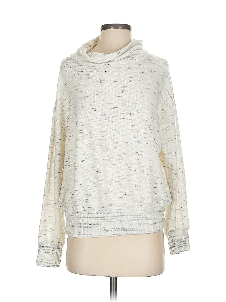 By Anthropologie Pullover Sweater, Size: Small. Item Details: Ivory, Metallic Pattern, Cowl Neck, Long Sleeve, Glitter, Women's Tops, Polyester/Cotton/Viscose