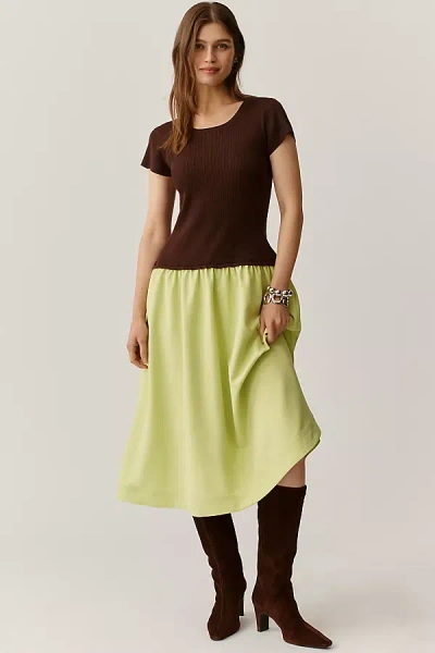 57% polyester, 21% rayon, 15% nylon, 7% elastane Pullover styling Hand wash Imported Short-Sleeve Twofer Sweater Midi Dress by Anthropologie in Green, Women's, Size: XL, Polyester/Nylon/Rayon