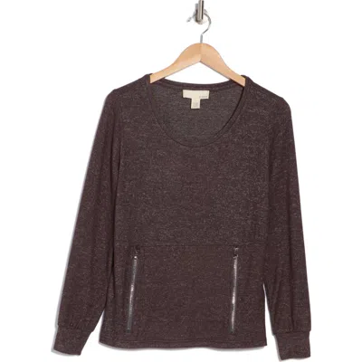 BY DESIGN Mavis Zip Pocket Pullover In Brown