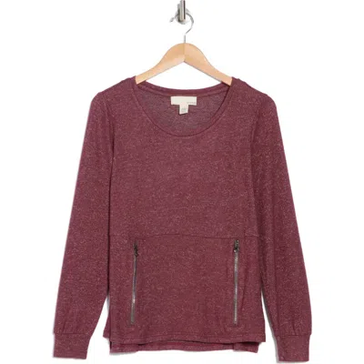 BY DESIGN Mavis Zip Pocket Pullover In Burgundy