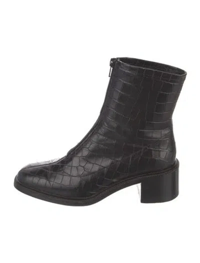 By Far Embossed Leather Mid-Calf Boots Black Square-Toes Exposed Zip Closure at Uppers | By Far Embossed Leather Boots in Black, Women's IT 37 | 7