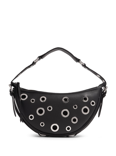 Leather Shoulder Bag With Studs And Grommet Detailing In Black