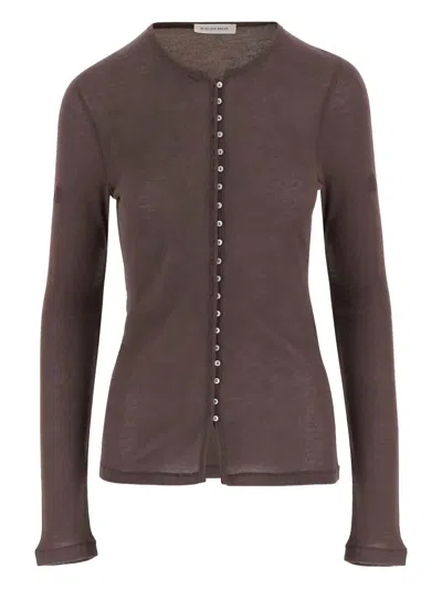 brown front button closure straight hem