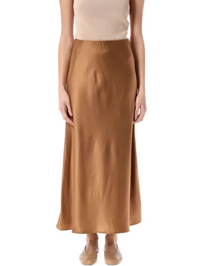 BY MALENE BIRGER Elastic Waistband Ankle Length Satin Skirt In Toasted Coconut
