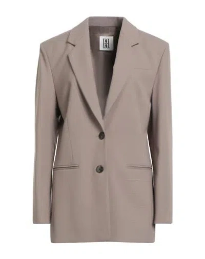 shitake beige recycled polyester blend notched lapels shoulder pads chest welt pocket long sleeves with buttoned cuffs dart detailing two front jetted pockets straight hem English rear vents internal jetted pocket full lining front button fastening This item is made from at least 50% recycled or upcycled materials. For recycled synthetic clothing products, we highly recommend using a microfibre-catching washing bag to ensure that no microplastics that can pollute water are released in the process. Learn more about what makes a product Conscious on our Conscious Criteria page