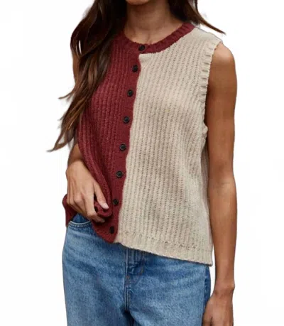 BY TOGETHER Amara Sleeveless Sweater Vest Top In Burgundy Taupe
