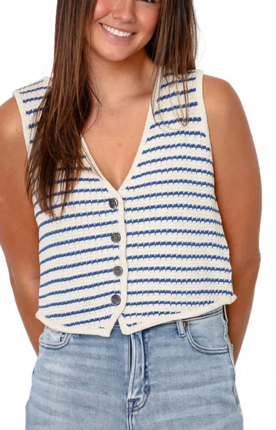 BY TOGETHER V-neck Button Down Vest In Navy And Cream Striped In Multi