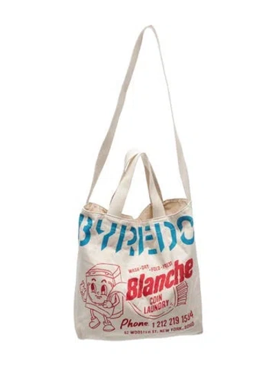 Byredo Messenger Bag Neutrals Canvas Graphic Print Unlined Open Top | Byredo Canvas Messenger Bag in Neutrals
