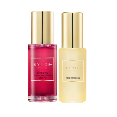 Glow Duo Set. Benefits: Smooths, brightens, and hydrates the complexion. Delivers visible radiance and healthy-looking skin. Perfect for gifting or completing your daily routine. Key Ingredients: Upcycled Beet Extract Is Rich In Antioxidants, Including Anthocyanins And Amino Acids, Helping Protect Against Environmental Stressors, Replenish Hydration, And Support A More Even, Radiant Complexion* 7% PHA (Polyhydroxy Acid) Is A Gentle Exfoliant With A Larger Molecular Size Than AHAs, Suitable For Sensitive Skin; It Helps Remove Flaky Texture, Attract Hydration, And Improve Clarity For A Glowing Look* Pear Extract Is Rich In Glutathione, Vitamin C, And Flavonoids, Helping Hydrate And Visibly Brighten Dull, Flaky Skin* Glow Matrix Is A Radiance-Boosting Blend With Diamond Powder, Ceramides, Turmeric, And Peptides That Enhances Glow And Helps Maintain Moisture. Features: 1 Pear Serum Oil (20 ml). 1 Beet Glow Boosting Serum (30 ml).