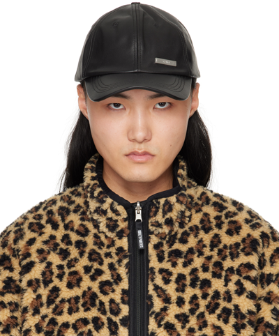 Grained leather cap in black. · Curved brim · Logo plaque at face · Embroidered eyelets at crown · Cinch fastening · Twill browband · Full plain-woven lining · Logo-engraved metal hardware Supplier color: Black
