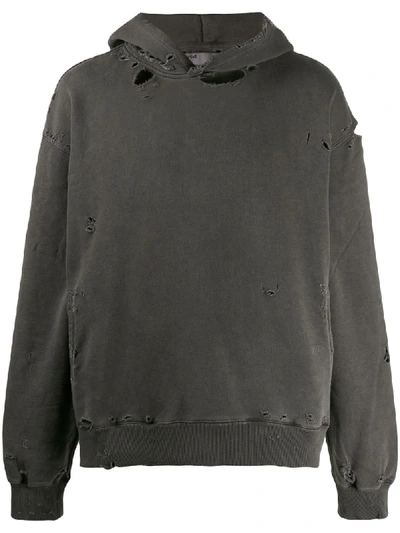 Grey cotton distressed jersey hoodie from C2H4 featuring a jersey knit, long sleeves, distressed effects and a hood.