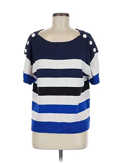 CAbi Pullover Sweater, Size: Medium. Item Details: Blue, Square Neckline, Short Sleeve, Women's Tops, 100% Cotton