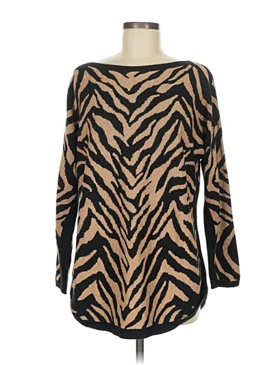 CAbi Pullover Sweater, Size: Medium. Item Details: Brown, Animal Print Pattern, Boatneck, Long Sleeve, Women's Tops, Cotton/Rayon/Fiber