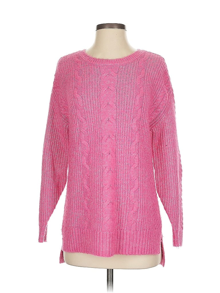 CAbi Pullover Sweater, Size: X-Small. Item Details: Pink, Crew Neck, Long Sleeve, Glitter, Women's Tops, Other Materials/Acrylic/Cotton