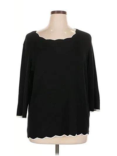 Cable & Gauge Pullover Sweater, Size: 1X. Item Details: Black, Scoop Neck, 3/4 Sleeve, Women's Tops, Rayon/Polyester