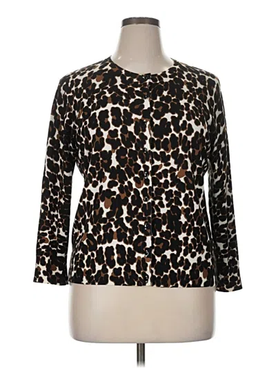 Cable & Gauge Pullover Sweater, Size: X-Large. Item Details: Brown, Animal Print Pattern, Keyhole Neckline, 3/4 Sleeve, Women's Tops, Rayon/Nylon