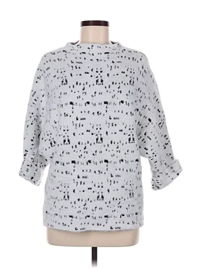 Calligraphie Pullover Sweater, Size: Medium. Item Details: Silver, High Neck, 3/4 Sleeves, Women's Tops, Nylon/Acrylic/Polyester