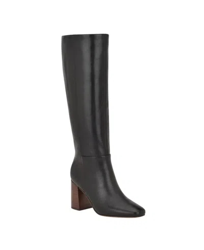 Calvin Klein Arista Boots Women's Black Leather Block Heel Knee High LION576