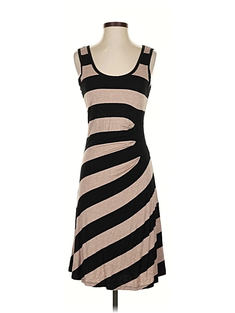 Calvin Klein Casual Dress, Size: 4. Item Details: Brown, Stripes Pattern, Scoop Neck, Short Length, Sleeveless, Ripped, Women's Dresses, Rayon/Spandex