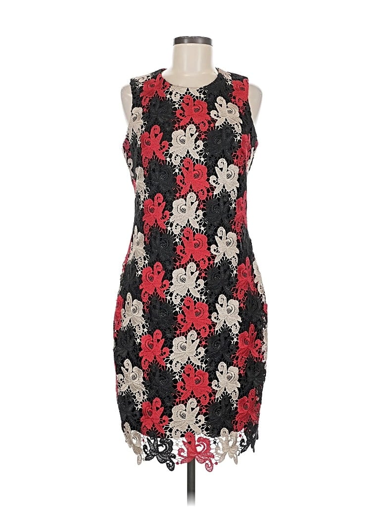 Calvin Klein Cocktail Dress, Size: 8. Item Details: Red, Graphic Pattern, Sheath, Mock Neckline, Knee Length, Sleeveless, Women's Dresses, 100% Polyester