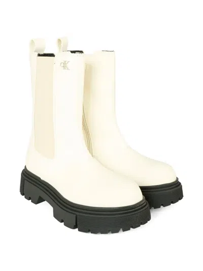 CALVIN KLEIN Kids' Elastic-panel Chunky-sole Boots In White