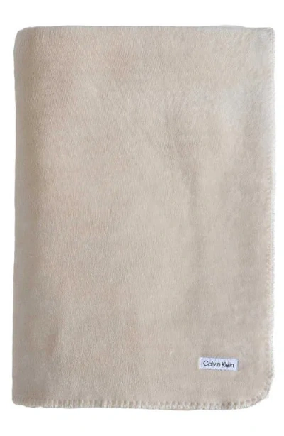 CALVIN KLEIN HOME Modern Reversible Solid Plush Blanket In Medium Beige