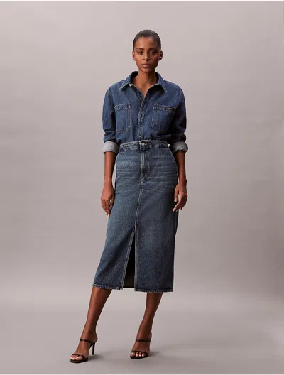 CALVIN KLEIN JEANS EST.1978 Calvin Klein Women's Denim Maxi Carpenter Skirt In Blue