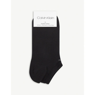 Calvin Klein cotton-blend liner socks76% cotton, 22% polyamide, 2% elastanePulls onPack of three, ribbed, logo cuffsMachine wash mildFor hygiene reasons, this product cannot be exchanged or refunded, unless faulty.