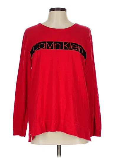 Calvin Klein Pullover Sweater, Size: Large. Item Details: Red, Crew Neck, Long Sleeve, Women's Tops, Rayon/Nylon
