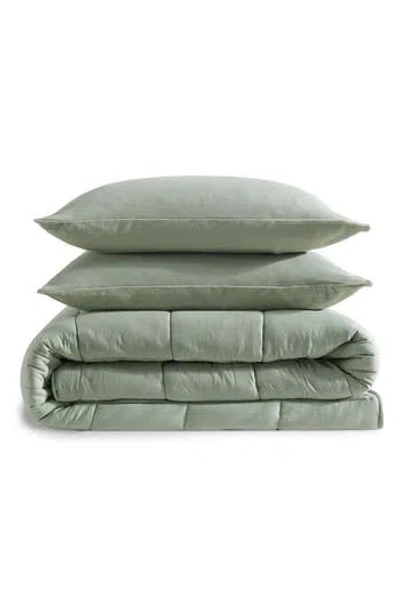 CALVIN KLEIN Reversible Plush Washed Microfiber Comforter Bedding Set In Green
