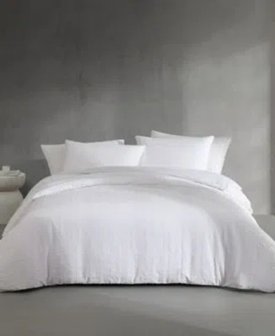 CALVIN KLEIN Solid Puckered Grid Duvet Cover Set In White