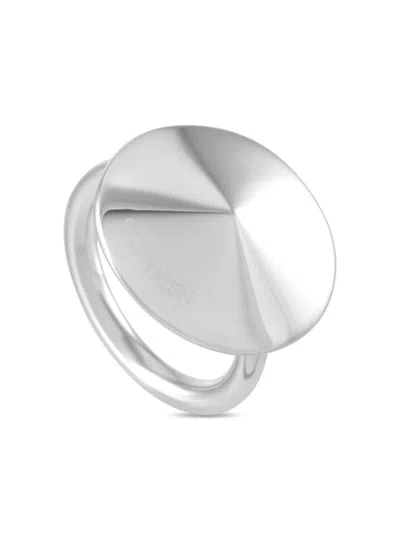 silver-tone stainless steel round cut thin band Original box included. Condition: EXCELLENT. This previously owned item is in near-perfect condition with no signs of damage or use.