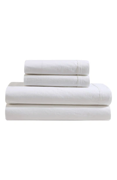 CALVIN KLEIN Washed 200 Thread Count Percale Sheet Set In White