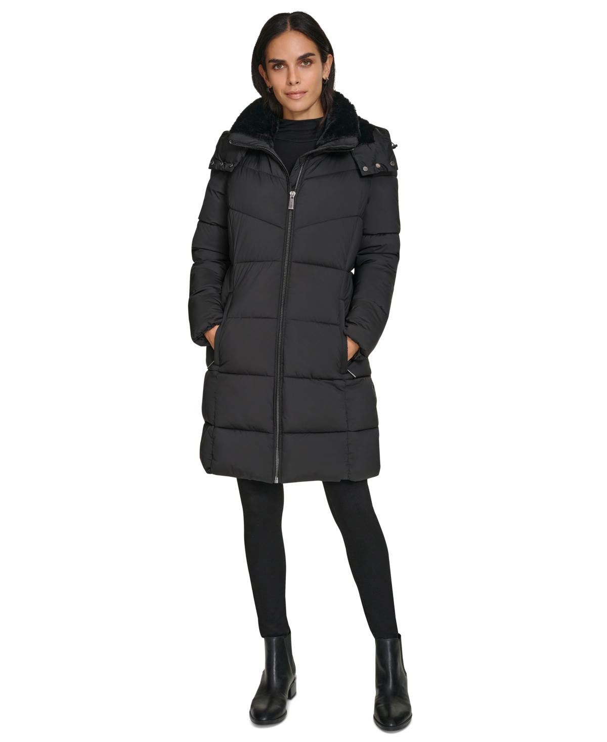 Calvin Klein has your back with this sleek puffer coat designed with the softest faux-fur lining throughout the collar and hood.