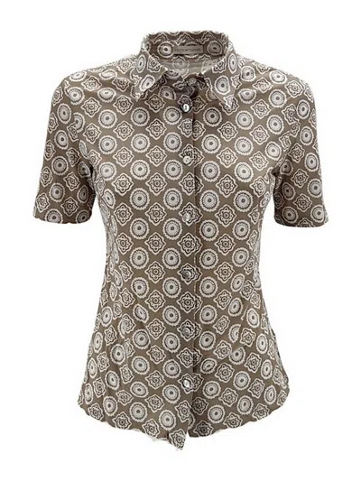 Polo shirt by Camicetta Snob. Made of non-iron jersey fabric. Slim fit. Shirt collar, shoulder and regular short sleeves. Even at the bottom, darts on the back. High side length. Composition: 85% polyamide 15% elastane. Lily pattern.